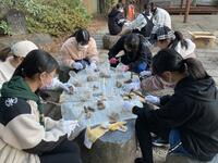 木の葉化石園でハンマーを使って岩石を割りながら化石探しをしました。