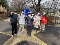 昼休みに校庭で通学班会議を行いました。登下校する班ごとに新しい班長を決めたり、通学路の確認をしたりしました。