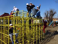 昼休み、子供たちは元気いっぱいに校庭で遊んでいます。