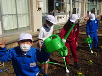 5・6年生の算数の授業の様子です。5年生は立体の学習、6年生は単位の学習をタブレットを使って行っていました。また、昼休みはみんなで仲良く元気に校庭で遊んだり、花壇の水やりをしたりしていました。