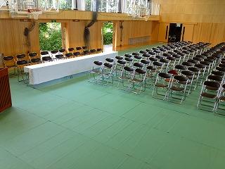 明日の体育館落成記念式典・記念コンサートの準備を行いました。6年生が一生懸命に式場を作りました。明日はすばらしい式典とコンサートができると思います。演奏していただく「わくわくトロンボーンカルテット」のみなさん、どうぞよろしくお願いいたします。