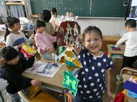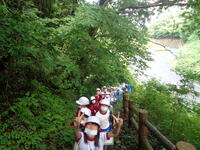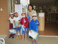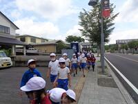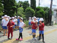 小雨決行!引率ボランティアの皆様のご協力をいただきながら町探検を実施することができました。