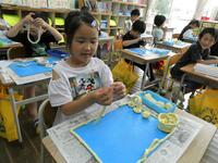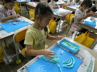 1-1図工「ひもひもねんど」長いひもからの形作りを楽しんでいました。