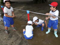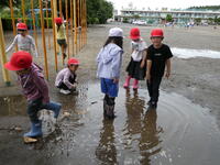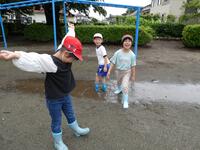 梅雨入りし、長靴大活躍!水たまりで遊ぶ子供たちの様子を嬉しく見ています。~遊びから学びへ~五感を刺激する外遊びを推奨します。どうぞよい週末を(^^)/