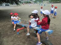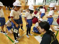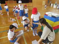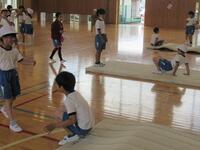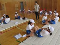 2-1体育「マット運動」前回より回転位置や体形が整ってきました。