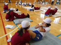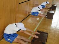 3-1、3-2体育「新体力テスト種目」反復横とび、上体起こしの練習です。