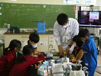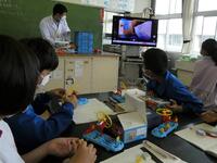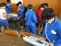 4-1、4-2理科「電気のはたらき」モーターを回し、簡易検流計の使い方も確認しました。