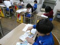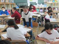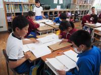 1-2学級活動「アンケート」生活や友達関係を振り返ってアンケートに答えました。業間は読書やお絵かきをして過ごしていました。