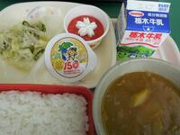150周年をお祝いする給食は『栃木いっぱいカレーライス』と『いちごゼリー』でした。