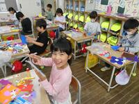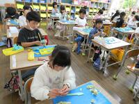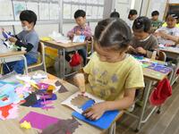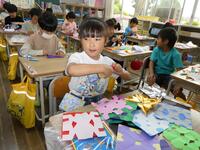 1-1図工「ちょきちょきかざり」模様を重ね合わせる工夫も見られました。
