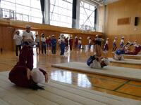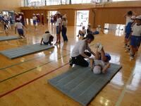 3-1、3-2体育「マット運動」前後転の回転技の確認をしていました。倒立技までいけるかな?