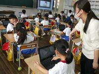 1-2学級活動「chromebookのつかいかた」パスワードの入力方法を確かめていました。