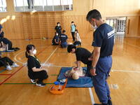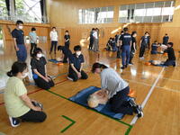 5-1、5-2体育「マット運動」回転系の技の練習です。手本を撮影し確認していました。