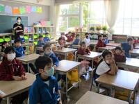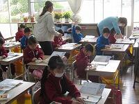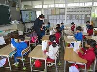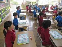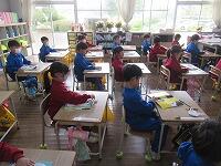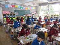 2時間目は、1組が算数、2組が国語でした。1組の算数は2組の算数と同じ内容で、おはじきを使って、数の違いを発見していました。2組の国語では、話を聞く姿勢を確認していました。「足は○○、背中は○○、背中とおなかに○○一つ」○○の部分は、ぜひお子様と確認をしてみてください。