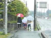 1~3年生の下校時は本降りでした。東方面の下校指導に出かけてみました。横断歩道の待ち方OK!ですね。大型車が通過するときは傘も飛ばされやすいので気を付けてほしいです。ご家族のお出迎えはとてもありがたいです。いつもありがとうございます。