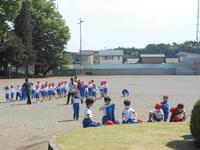 午後は学年での合同体育です。気温が上がってきましたね。脱いだ洋服をきちんとたたんでから広い校庭でのびのびと運動していました。