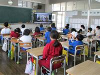 各教室からの拍手が聞こえてきました。(1年生も電子黒板に映る上級生の様子を興味深く見ていましたね。)