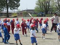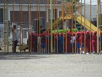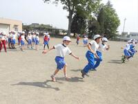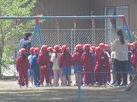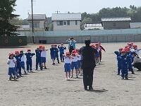 体育の時間には、校庭で整列の仕方や準備運動の仕方、校庭の遊具の使い方などを学習していました。