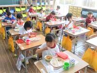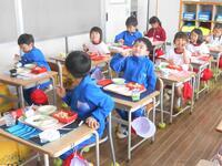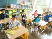1年生の給食の様子は昨日とは別アングルで (*^_^*)おいしい顔