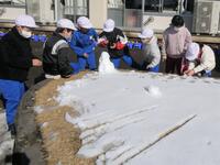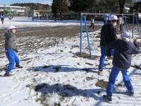 雪の下には霜柱、子供たちは発見をしながら季節の遊びを楽しんでいました。