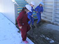 今日の子供たちは、友達と雪遊びを存分に楽しもう!と勇んで外に出るも、小雨に阻まれ残念そうでしたね。
