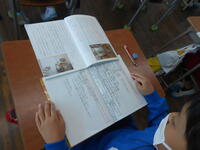 廊下には“おすすめ本”の紹介が掲示されています。学年によって人気シリーズがあるようです。生き物図鑑も不動ですね。朝読タイムはオルゴールのBGMが流れる中、皆、静かに本を開いています。とてもいい時間です。(^_ -)