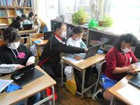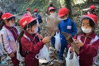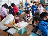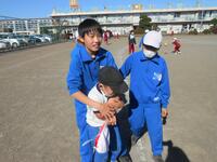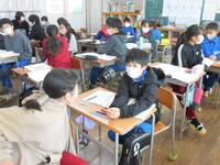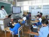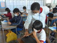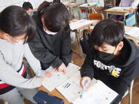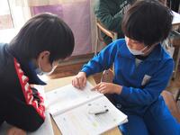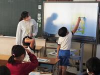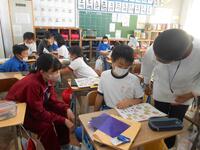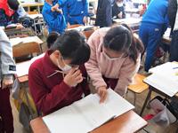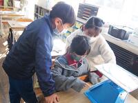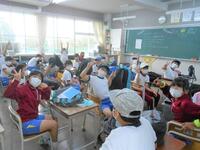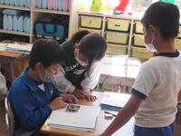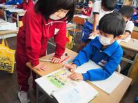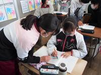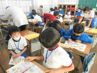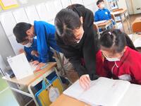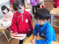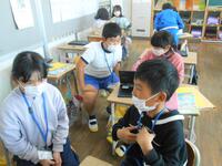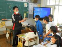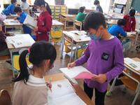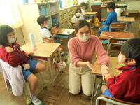 中学生たちは担当クラスで学習や作業の手伝いをしたり、休み時間に小学生といっしょに遊んだりしていました。