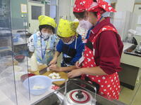 学級園では、あら、さつまいも掘り!大きなお芋がいっぱい、なかなかの収穫です。煮ても焼いてもおいしい旬野菜、どんな調理法で味わうのかな?