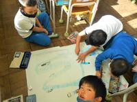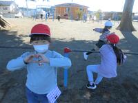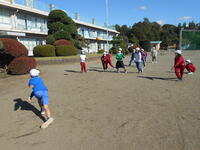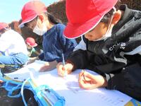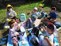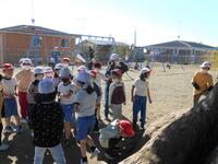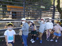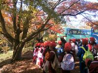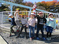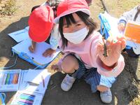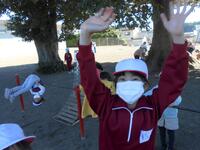 「行ってきま~す」ねらい…根本山の自然や人々にふれあいながら、秋の自然に親しみ、自然物を使った遊びを工夫するとともに公共施設を大切に使って楽しむ。