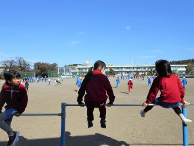 業間(1~3年生)、昼休み(4~6年生)を活用し、各自5分間走にチャレンジしています。