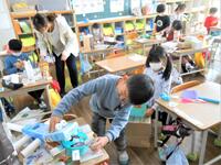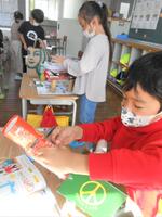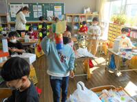 1-2図工「はこでつくったよ」箱の形や色を生かして何がつくれるかを考え工夫して作る学習です。ワニや犬や猫やウサギや…自分の思いを生かしながら夢中で仕上げていましたね。