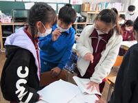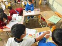 6-2国語「町の未来をえがこう」複数の資料を読み必要な情報を関係付けながらそれらを活用する学習です。本時のめあては「問題提起と序論、本論、結論に分け、序論を理解する」ことでした。どこからが本論か、なぜそこなのかを友達と意見交換していました。