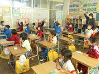 初日の読書タイムは、司書の先生や無担の先生が読み聞かせを行いました。子供たちが本を手にするきっかけになってほしいですね。図書館司書のF先生は毎週火曜日に来校しています。
