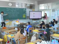 ◇2年生「えい語で数を数えよう」今日は1~15までの数を英語で言う練習をしました。おはじきを使ってペアで「How many ?」のやりとりをしたり、電子黒板で確認したりしました。「ドラえもんは何人 ?」の問題には大爆笑でしたね。