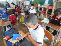 5-1国語「報告するための資料を活用しよう」環境問題について報告会をするための資料探しをしていました。地球温暖化や海洋プラスチック、森林伐採など、各自の視点で調べていました。