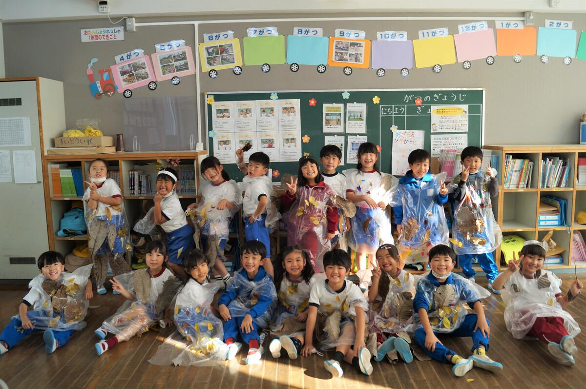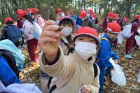 子供たちはまるで宝探しのように色づいた紅葉や木の実、大きな葉っぱを夢中で集めていたようです。