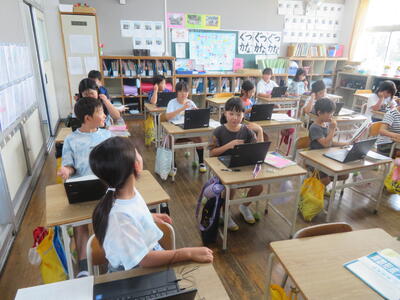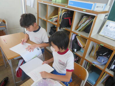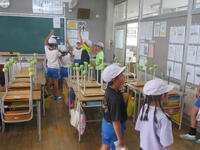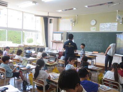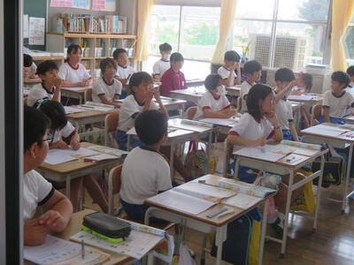 本日も大変暑い日でしたが、エアコンと扇風機を効果的に使う中、授業に集中している子供たちでした。
