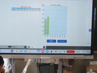 本日は、四捨五入で概数にしてから、棒グラフで表す学習を行っていました。