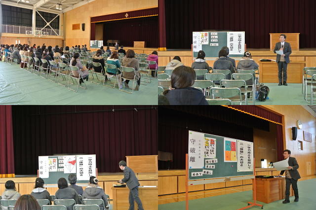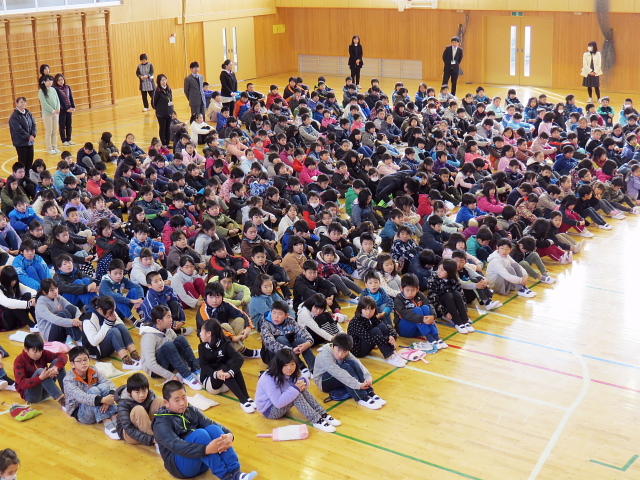 終業式が終わった後に児童指導主任から冬休みの生活について話がありました。冬休みの「合い言葉:はひふへほ」のお話でした。冬休みの「はひふへほ」をしっかり守りましょう。