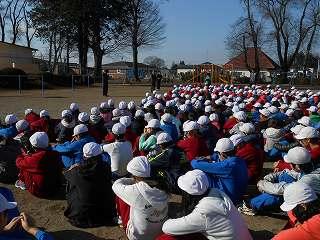 2時間目の休み時間に避難訓練がありました。今回の訓練は、休み時間に自主的に避難する訓練でした。放送を聞いて自分たちで考えてすばやく避難することができました。