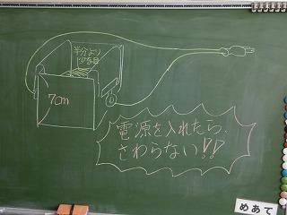 ステンレス板に電気コードをつなぎ、コンセントにつないで2,3分すると・・・