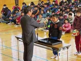 今日の業間に学級委員任命式がありました。3学期、学級の中心となって活躍する子たちです。校長先生から一人一人任命書を渡してもらった後、後ろを向いて全校生にやる気いっぱいの顔を見せました。3学期がんばってください。