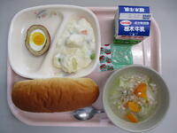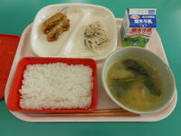 ごはん、牛乳、いわしの煮付け、ひじきサラダ、肉じゃが、654kcal。