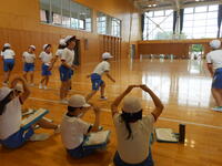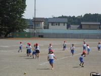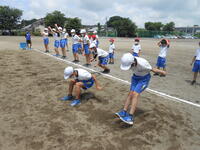 梅雨の晴れ間、代表児童は県陸上記録会に向けての練習をがんばっています。