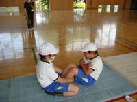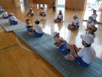 3年生…マット運動で前転を練習していました。イメージはダンゴムシ!