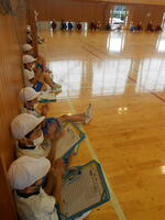 体育館種目(握力、上体起こし、反復横とび、長座体前屈)の様子をご覧ください。