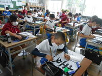 5年生の「社会」は、日本の気候の特色について各自が調べ、まとめる作業をしていました。