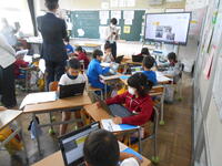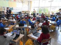 6年生…クロームブックでテスト後、「マルセリーノの歌」の演奏練習をしていました。