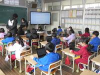 1-1外国語活動「アンケート」、1-2国語「小学校のことをしょうかいしよう」、◇3-1国語「外国のことをしょうかいしよう」、◇4-1国語「世界一美しいぼくの村」、6-2保健「地域の保健活動」の授業の様子です。
