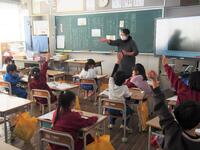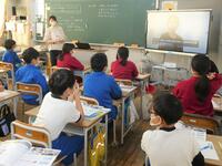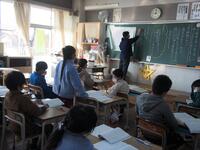 1-1道徳「だめなことはだめ」、2-1学活「図書室の本のならべ方」、3-2図工「紙はんが」、4-1音楽「音階をもとにした音楽つくり」、4-2外国語活動「教室の名前」、5-2社会「世界とつながる自動車」、6-1道徳「よりよいきまり」の授業の様子です。